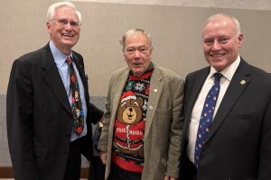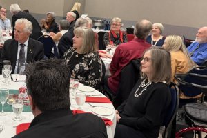 Presentations of two Paul Harris Fellow Awards for service above self to the club and community or for contributing at least US$1,000 to The Rotary Foundation were presented at the Ladner Rotary club dinner to celebrate Christmas on December 16, 2025. Thanks to Denis Denischuk and others over 30 Rotary members and family, friends enjoyed an evening of fellowship, seasonal music and tasty dinner at the Coast Tsawwassen Inn.