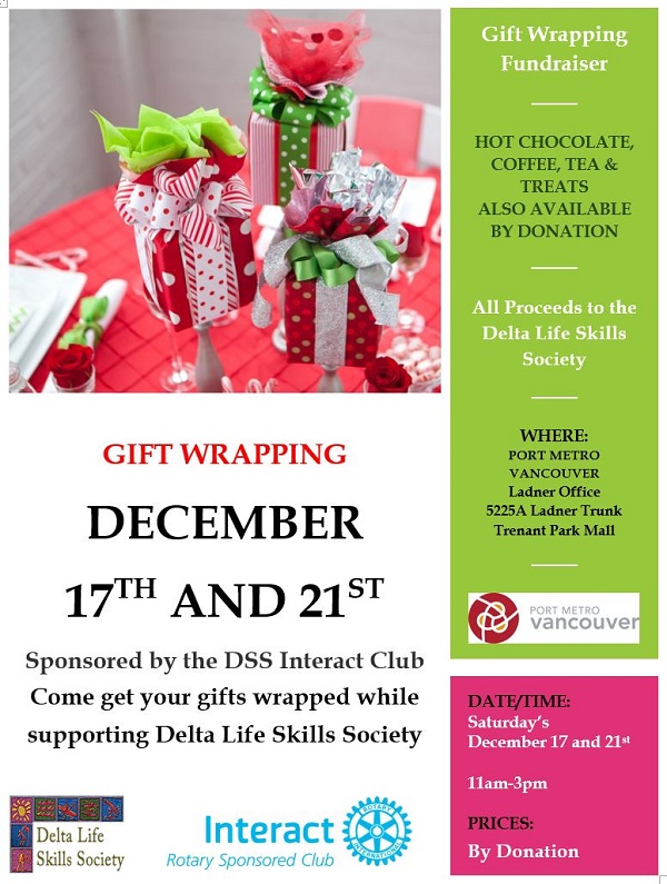Delta Life Skills to benefit from this year's Delta Secondary School Interact gift wrapping sessions in December. Please keep this in mind for your Christmas gift wrapping.