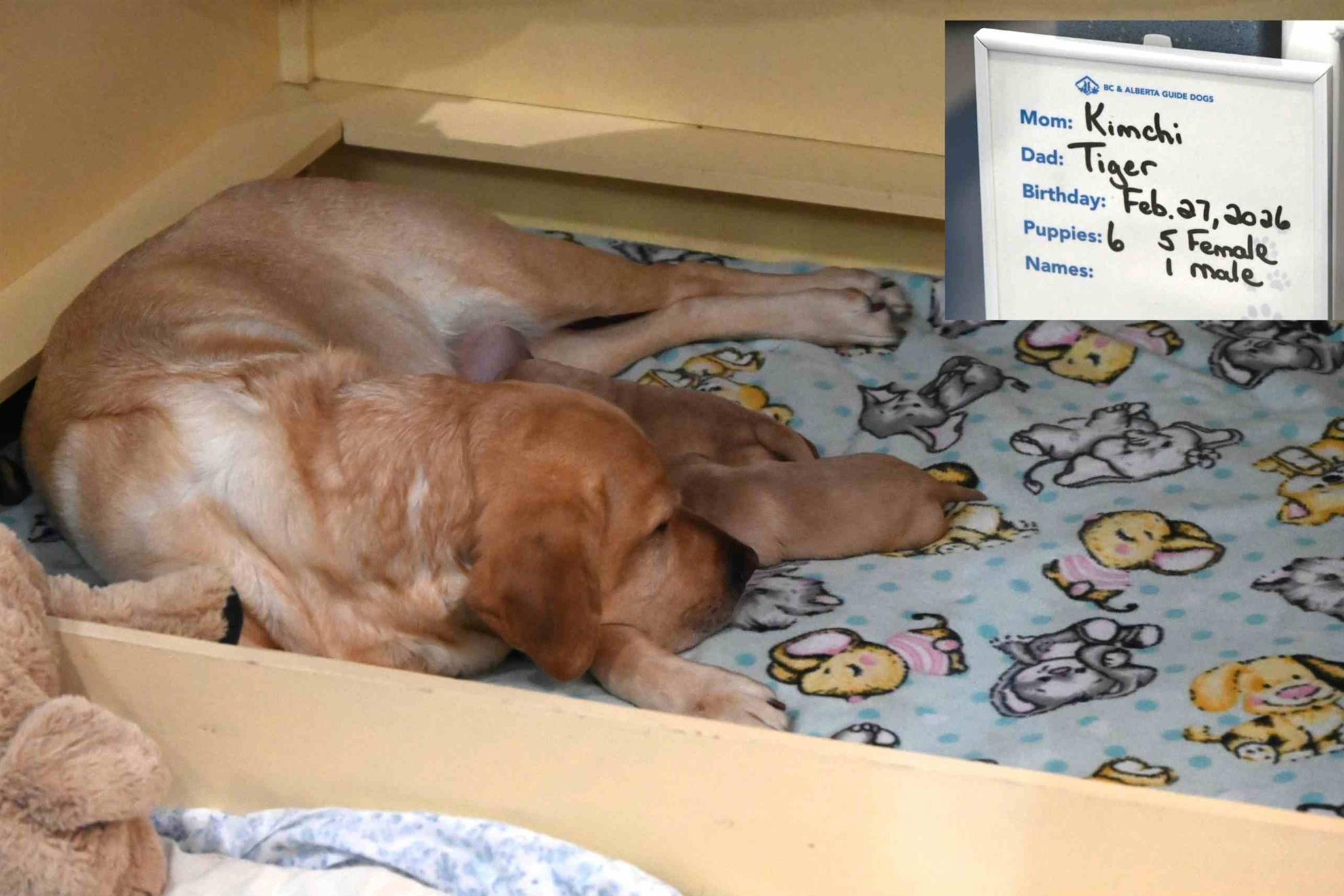 | two of six puppies just three days old with mom |