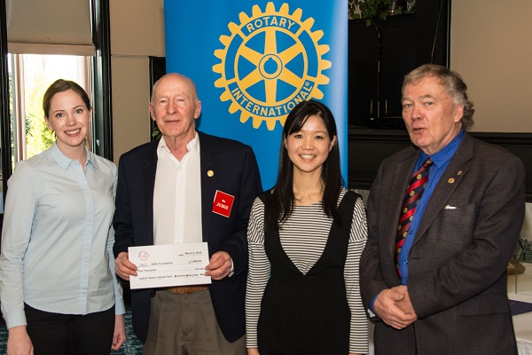 Randi Church (left) and Shiho Uzawa (second right), of Windset Farms, present a cheque for $5,000 to the Ladner Rotary Splash Park project, in trust to the Delta Foundation. Walt Hayward receives the donation with club President Ulf Ottho. photo by Chris Offer |