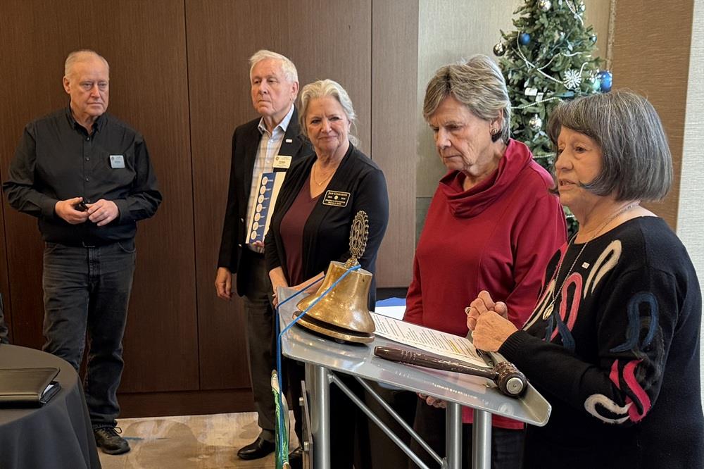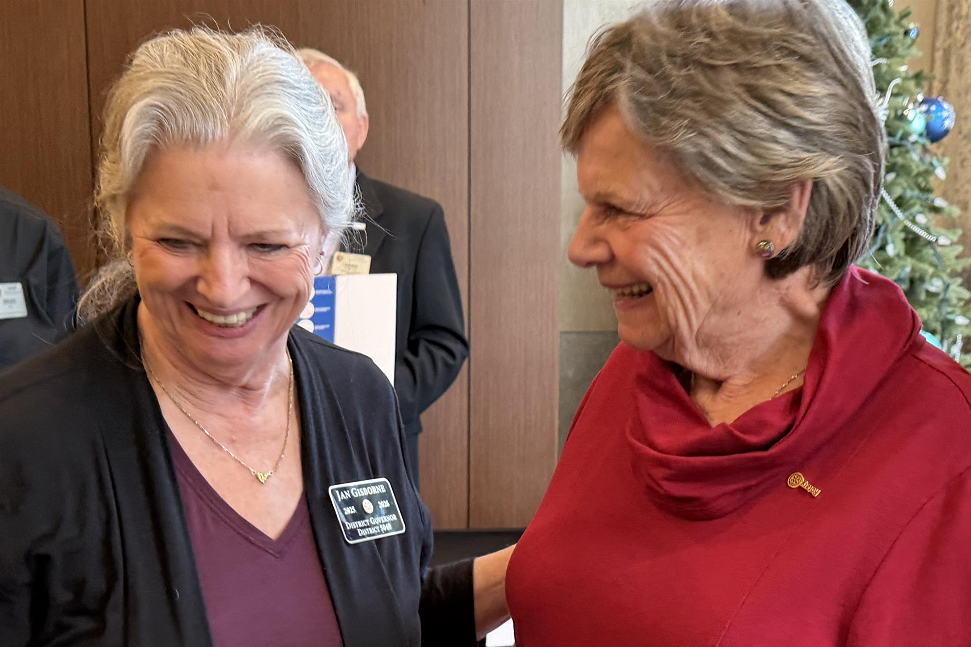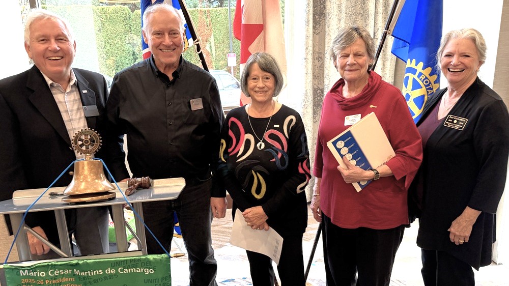 District Governor for the 48 Rotary Clubs in Metro Vancouver up the coast to Prince Rupert and inland to Prince George Jan Gisborne made her annual visit to the Rotary Club of Ladner on November 18, 2025. A member of the Rotary Club of Powell River, she spoke about the need for Rotary clubs to not only build membership, but engage and retain members through community and world service above self and fellowship and friendship developed through that service. She also participated as Past District Governor Penny Offer inducted Delta Denture Centre owner and operator Dr. Carol Le Vasseur as a new member of Ladner Rotary.