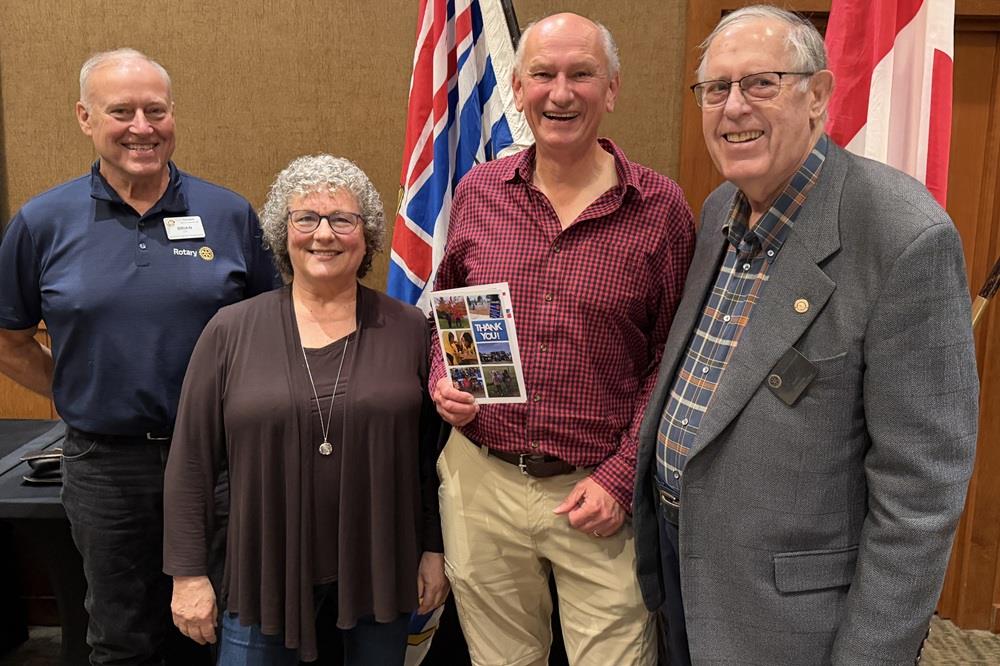 ![]() President Brian Coe and Richard Shantz thank Lorna Boyle and Richard Nash with a donation in their names to The Rotary Foundation global campaign to rid the world of poliio. | |
